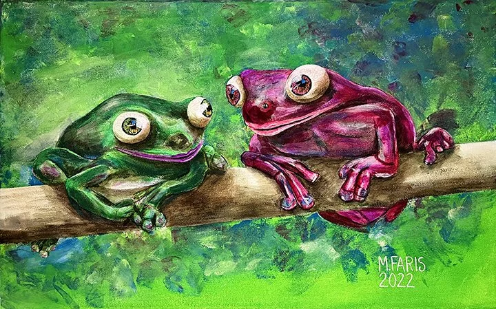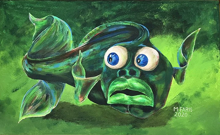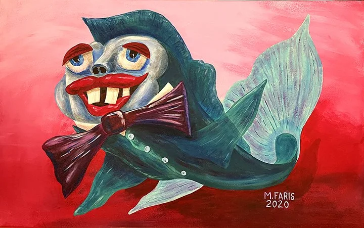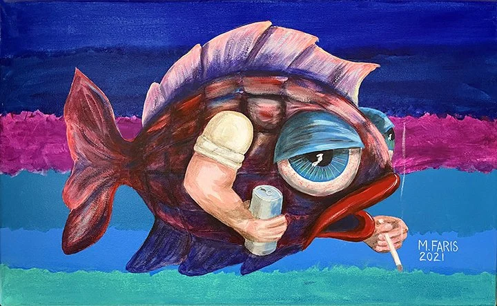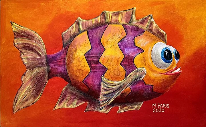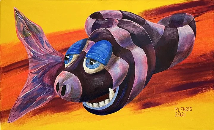 Original Acrylic Paintingsby Michael Faris I find working on canvas preferable to painting other surfaces. There is something very comfortable and satisfying about it that I find difficult to describe —MF Octomusician Bristle Bird Rainy Toadstool Baboon Struthio Screaming Baboon Van’s Dream Blue Footed Boobies Dodo Froggy with a Banjo Shoebill The Flasher The Fiddler Soft Green Whisky Tango Foxtrot Tongue Twister Bug Eyes Blue Gollyfish Blue Eyes - Black Lips Fish Bar Orange Roughy Abstracta Best Buddies Birds on a Wire Brown Grouper Catfish John Cats at Sunrise Croonfish Gomer Oh Dear! Otis Rosy Rockfish Ruby Lips Rusty Two Treefrogs Trumpster Turtle in the Sky Twins What’s Next? Winocross Scared Green